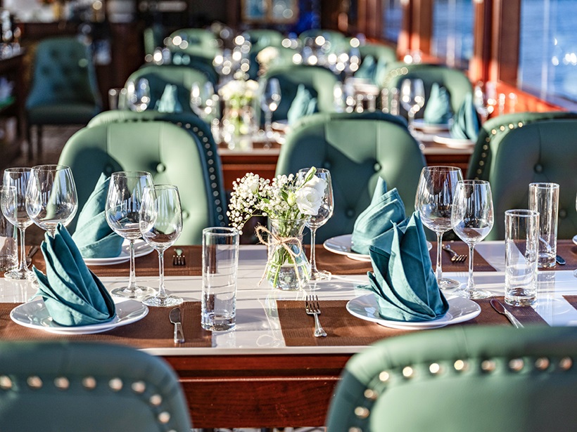 Qúy khách dùng bữa trưa buffet tại nhà hàng sang trọng trên tàu với thực đơn đa dạng các món ăn truyền thống, hải sản đặc sắc của vùng biển Hạ Long.