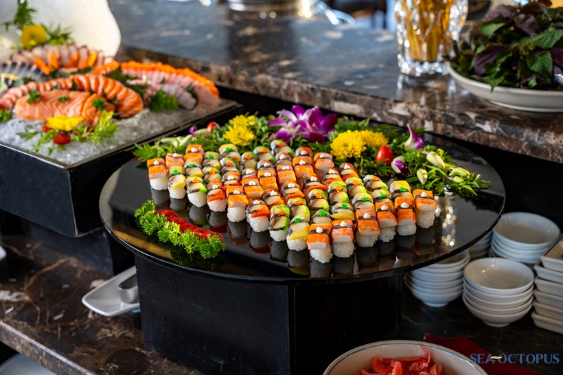 Thoả mãn mọi giác quan cùng đại tiệc Buffet với hơn 60 món ăn hoặc lựa chọn Set Menu thịnh soạn tại nhà hàng Sea Breeze hoặc Bayside Delight. Thực đơn được lấy cảm hứng từ tinh hoa ẩm thực Âu - Á cùng các món hải sản, đặc sản của địa phương được chế biến chu đáo bởi những đầu bếp chuyên nghiệp,...