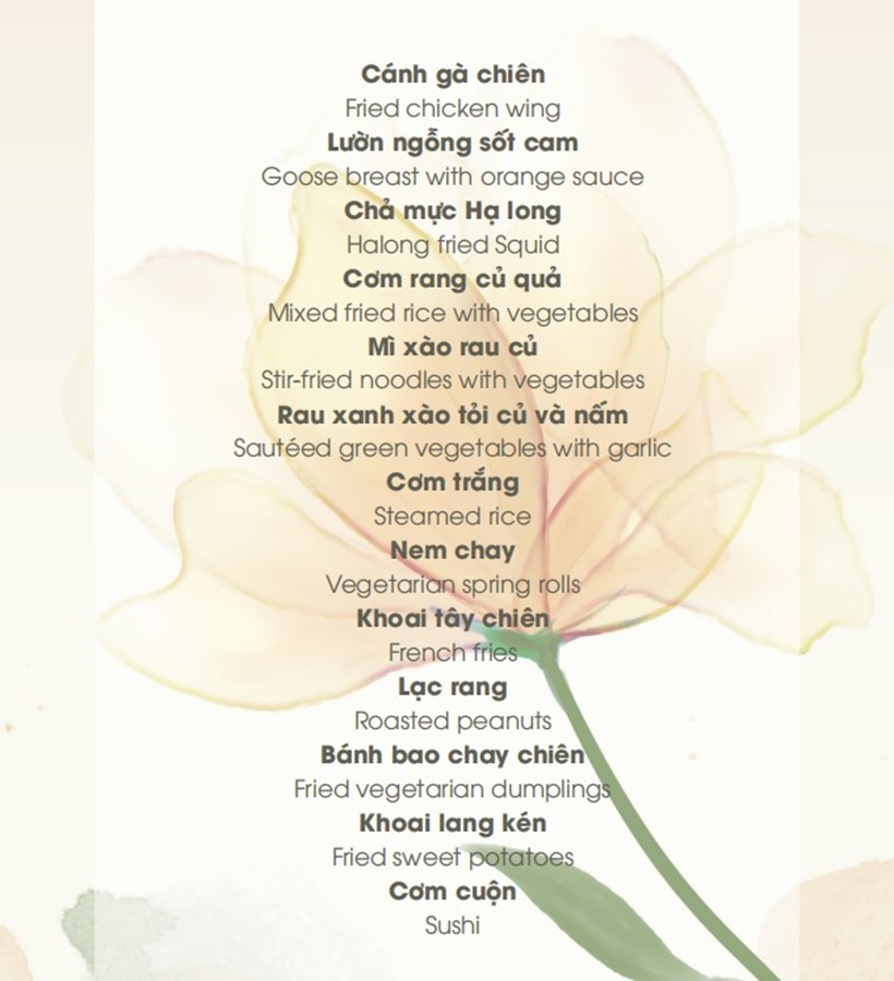 - Đồ uống trong bữa ăn. Thuế VAT.
