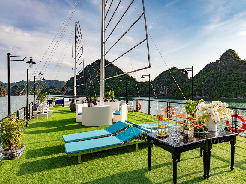 - The HALONG SONATA 5-star cruise launched in July 2024, with 99 seats and 3 decks: 3 floor: First floor: Restaurant. Second floor: Luxury bar area for relaxation and music. Third floor: Sightseeing area, sunbathing area, and Jacuzzi