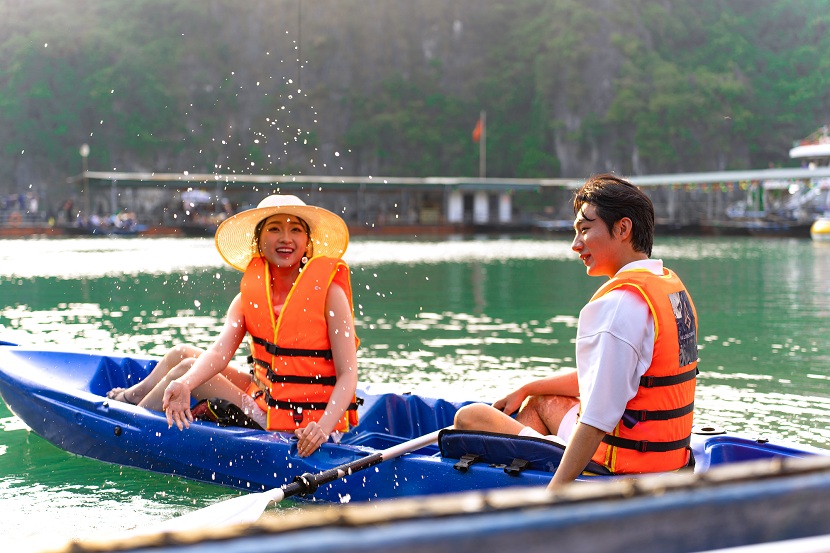 Sau bữa trưa, Quý khách tiếp tục hành trình nghiệm rất thú vị bằng chèo thuyền kayak hoặc đi đò nan để khám phá Hang Luồn.