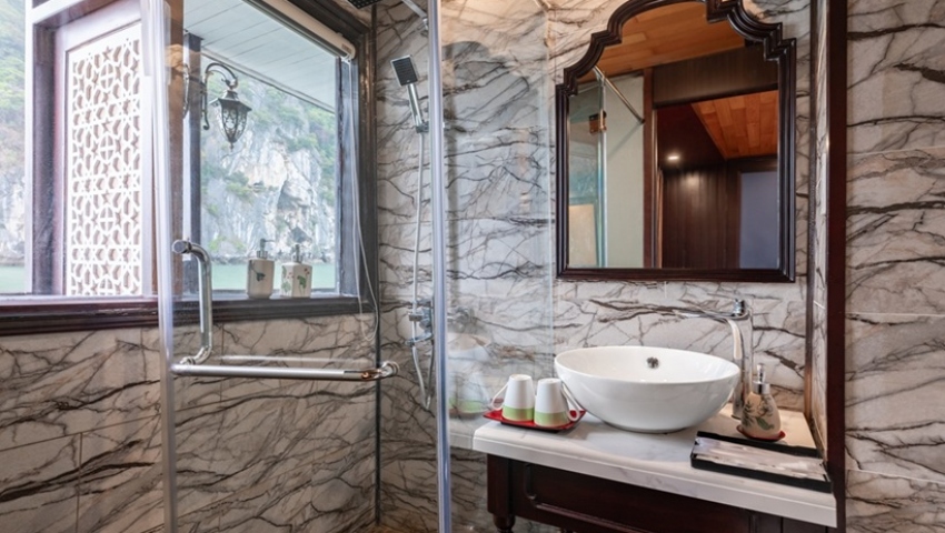 Cabin rộng rãi có máy lạnh và phòng tắm riêng
